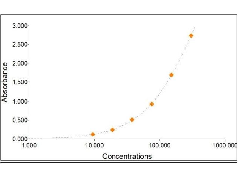 2. The Standards and the test sample(s) should be loaded into the ELISA wells as quickly as possible to avoid a shift in OD readings. Using a multichannel pipette would reduce this occurrence. Pipette 100 μL of Standard 0 (0.0 ng/mL) in duplicate Standard 1 (9.38 ng/mL) in duplicate Standard 2 (18.75 ng/mL) in duplicate Standard 3 (37.50 ng/mL) in duplicate Standard 4 (75 ng/mL) in duplicate Standard 5 (150 ng/mL) in duplicate Standard 6 (300 ng/mL) in duplicate