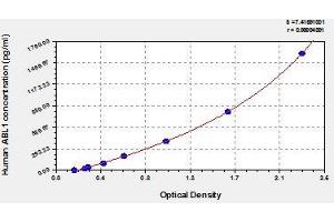 - Antibody specific for ABL1 has been pre-coated onto a microplate. Standards and samples are pipetted into the wells and any ABL1 present is bound by the immobilized antibody. After removing any unbound substances, a biotin-conjugated antibody specific for ABL1 is added to the wells. After washing, avidin conjugated Horseradish Peroxidase (HRP) is added to the wells. Following a wash to remove any unbound avidin-enzyme reagent, a substrate solution is added to the wells and color develops in proportion to the amount of ABL1 bound in the initial step. The color development is stopped and the intensity of the color is measured.