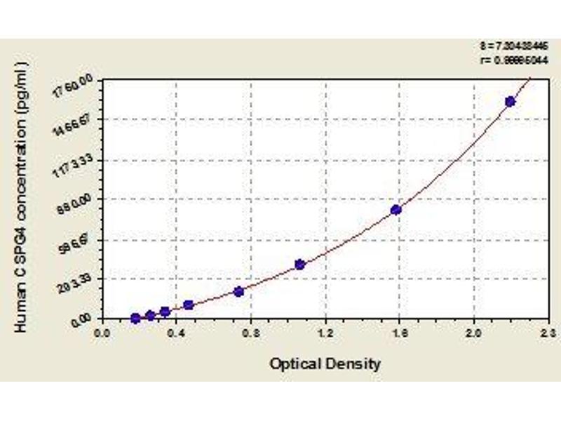 - Antibody specific for CSPG4 has been pre-coated onto a microplate. Standards and samples are pipetted into the wells and any CSPG4 present is bound by the immobilized antibody. After removing any unbound substances, a biotin-conjugated antibody specific for CSPG4 is added to the wells. After washing, avidin conjugated Horseradish Peroxidase (HRP) is added to the wells. Following a wash to remove any unbound avidin-enzyme reagent, a substrate solution is added to the wells and color develops in proportion to the amount of CSPG4 bound in the initial step. The color development is stopped and the intensity of the color is measured.
