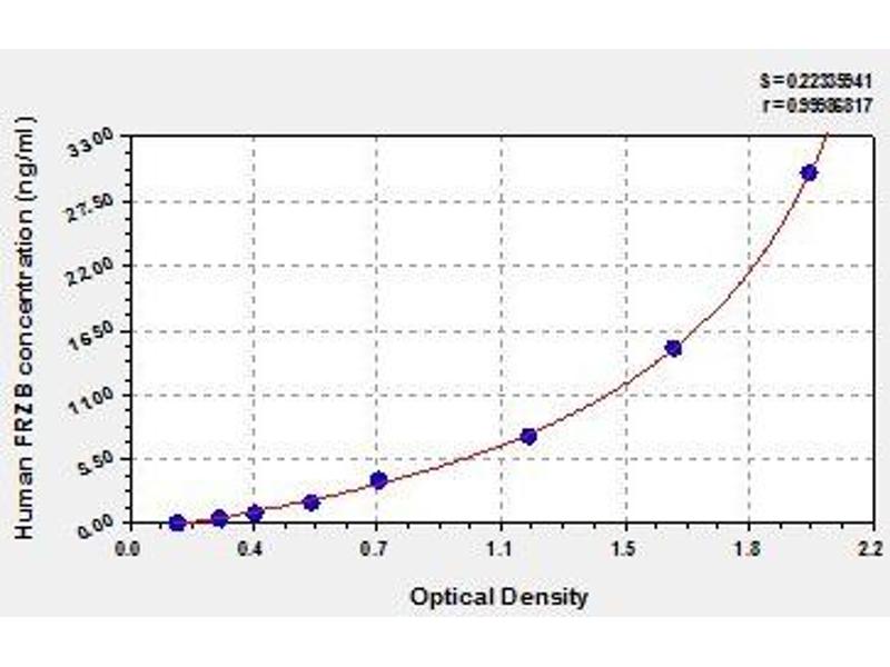 Antibody specific for FRZB has been pre-coated onto a microplate. Standards and samples are pipetted into the wells and any FRZB present is bound by the immobilized antibody. After removing any unbound substances, a biotin-conjugated antibody specific for FRZB is added to the wells. After washing, avidin conjugated Horseradish Peroxidase (HRP) is added to the wells. Following a wash to remove any unbound avidin-enzyme reagent, a substrate solution is added to the wells and color develops in proportion to the amount of FRZB bound in the initial step. The color development is stopped and the intensity of the color is measured.