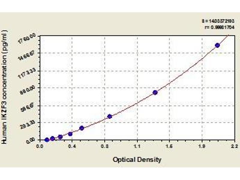 - Antibody specific for IKZF3 has been pre-coated onto a microplate. Standards and samples are pipetted into the wells and any IKZF3 present is bound by the immobilized antibody. After removing any unbound substances, a biotin-conjugated antibody specific for IKZF3 is added to the wells. After washing, avidin conjugated Horseradish Peroxidase (HRP) is added to the wells. Following a wash to remove any unbound avidin-enzyme reagent, a substrate solution is added to the wells and color develops in proportion to the amount of IKZF3 bound in the initial step. The color development is stopped and the intensity of the color is measured.