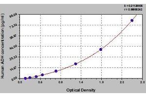 This assay employs the quantitative sandwich enzyme immunoassay technique. Antibody specific for ADH/VP/AVP has been pre-coated onto a microplate. Standards and samples are pipetted into the wells and any ADH/VP/AVP present is bound by the immobilized antibody. After removing any unbound substances, a biotin-conjugated antibody specific for ADH/VP/AVP is added to the wells. After washing, avidin conjugated Horseradish Peroxidase (HRP) is added to the wells. Following a wash to remove any unbound avidin-enzyme reagent, a substrate solution is added to the wells and color develops in proportion to the amount of ADH/VP/AVP bound in the initial step. The color development is stopped and the intensity of the color is measured.