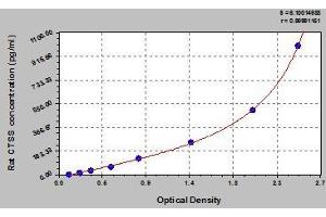 - Antibody specific for CTSS has been pre-coated onto a microplate. Standards and samples are pipetted into the wells and any CTSS present is bound by the immobilized antibody. After removing any unbound substances, a biotin-conjugated antibody specific for CTSS is added to the wells. After washing, avidin conjugated Horseradish Peroxidase (HRP) is added to the wells. Following a wash to remove any unbound avidin-enzyme reagent, a substrate solution is added to the wells and color develops in proportion to the amount of CTSS bound in the initial step. The color development is stopped and the intensity of the color is measured.