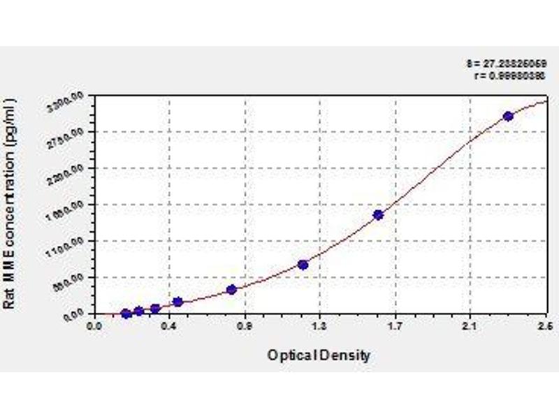 - Antibody specific for MME has been pre-coated onto a microplate. Standards and samples are pipetted into the wells and any MME present is bound by the immobilized antibody. After removing any unbound substances, a biotin-conjugated antibody specific for MME is added to the wells. After washing, avidin conjugated Horseradish Peroxidase (HRP) is added to the wells. Following a wash to remove any unbound avidin-enzyme reagent, a substrate solution is added to the wells and color develops in proportion to the amount of MME bound in the initial step. The color development is stopped and the intensity of the color is measured.
