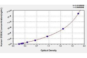 Antibody specific for S100A2 has been pre-coated onto a microplate. Standards and samples are pipetted into the wells and any S100A2 present is bound by the immobilized antibody. After removing any unbound substances, a biotin-conjugated antibody specific for S100A2 is added to the wells. After washing, avidin conjugated Horseradish Peroxidase (HRP) is added to the wells. Following a wash to remove any unbound avidin-enzyme reagent, a substrate solution is added to the wells and color develops in proportion to the amount of S100A2 bound in the initial step. The color development is stopped and the intensity of the color is measured.