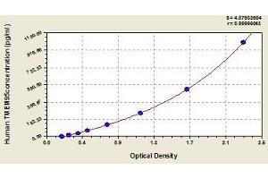 - This assay employs the quantitative sandwich enzyme immunoassay technique. Antibody specific for TMEM95 has been pre-coated onto a microplate. Standards and samples are pipetted into the wells and any TMEM95 present is bound by the immobilized antibody. After removing any unbound substances, a biotin-conjugated antibody specific for TMEM95 is added to the wells. After washing, avidin conjugated Horseradish Peroxidase (HRP) is added to the wells. Following a wash to remove any unbound avidin-enzyme reagent, a substrate solution is added to the wells and color develops in proportion to the amount of TMEM95 bound in the initial step. The color development is stopped and the intensity of the color is measured.