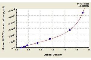 - Antibody specific for WFDC2 has been pre-coated onto a microplate. Standards and samples are pipetted into the wells and any WFDC2 present is bound by the immobilized antibody. After removing any unbound substances, a biotin-conjugated antibody specific for WFDC2 is added to the wells. After washing, avidin conjugated Horseradish Peroxidase (HRP) is added to the wells. Following a wash to remove any unbound avidin-enzyme reagent, a substrate solution is added to the wells and color develops in proportion to the amount of WFDC2 bound in the initial step. The color development is stopped and the intensity of the color is measured.
