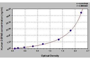 - Antibody specific for DEFA5 has been pre-coated onto a microplate. Standards and samples are pipetted into the wells and any DEFA5 present is bound by the immobilized antibody. After removing any unbound substances, a biotin-conjugated antibody specific for DEFA5 is added to the wells. After washing, avidin conjugated Horseradish Peroxidase (HRP) is added to the wells. Following a wash to remove any unbound avidin-enzyme reagent, a substrate solution is added to the wells and color develops in proportion to the amount of DEFA5 bound in the initial step. The color development is stopped and the intensity of the color is measured.
