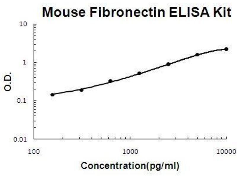 - mouse Fibronectin ELISA Kit was based on standard sandwich enzyme-linked immune-sorbent assay technology. A monoclonal antibody from rat specific for Fibronectin has been precoated onto 96-well plates. Standards(from plasma) and test samples are added to the wells, a biotinylated detection polyclonal antibody from goat specific for Fibronectin is added subsequently and then followed by washing with PBS or TBS buffer. Avidin-Biotin-Peroxidase Complex was added and unbound conjugates were washed away with PBS or TBS buffer. HRP substrate TMB was used to visualize HRP enzymatic reaction. TMB was catalyzed by HRP to produce a blue color product that changed into yellow after adding acidic stop solution. The density of yellow is proportional to the mouse Fibronectin amount of sample captured in plate.