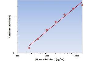 - The Human IL-13 Ralpha1 ELISA Kit allows for the detection and quantification of endogenous levels of natural and/or recombinant Human IL-13 Ralpha1 proteins within the range of 250-16000 pg/mL.