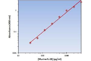 - The Murine IL-28 ELISA Kit allows for the detection and quantification of endogenous levels of natural and/or recombinant Murine IL-28 proteins within the range of 32-4000 pg/mL.
