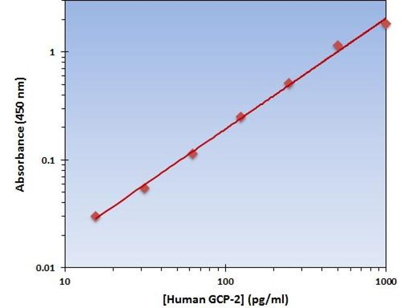 - The Human GCP-2 ELISA Kit allows for the detection and quantification of endogenous levels of natural and/or recombinant Human GCP-2 proteins within the range of 16-1000 pg/mL.