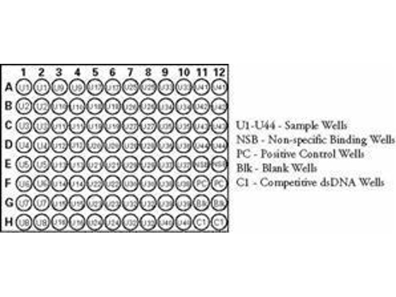 - A 96 well enzyme-linked immunosorbent assay (ELISA) replaces the cumbersome radioactive electrophoretic mobility shift assay (EMSA). A specific double stranded DNA (dsDNA) sequence containing the NF-kB response element is immobilized onto the bottom of wells of a 96 well plate (see Figure 1 on page 4). NF-kB contained in a nuclear extract specifically binds to the NF-kB response element. NF-kB (p65) is detected by addition of a specific primary antibody directed against NF-kB (p65). A secondary antibody conjugated to HRP is added to provide a sensitive colorimetric readout at 450 nm. NF-kB (p65) Transcription Factor Assay detects human NF-kB (p65). It will not cross-react with NF-kB (p50).