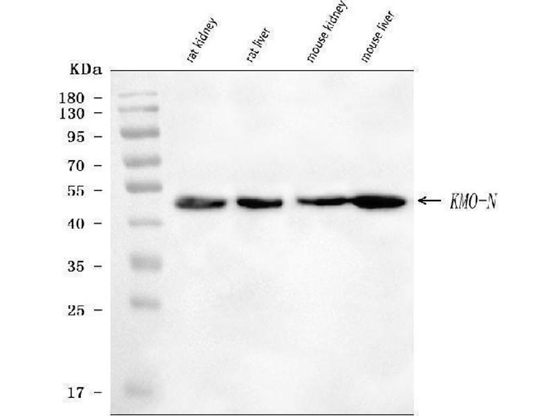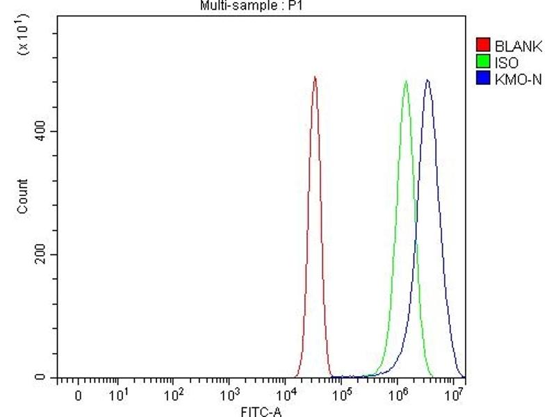 This gene encodes a mitochondrion outer membrane protein that catalyzes the hydroxylation of L-tryptophan metabolite, L-kynurenine, to form L-3-hydroxykynurenine. Studies in yeast identified this gene as a therapeutic target for Huntington disease. [provided by RefSeq, Oct 2011].