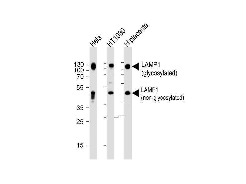 LAMP1 适用: 人, 小鼠 WB, IHC (p) 宿主: 兔 Polyclonal RB12577 unconjugated