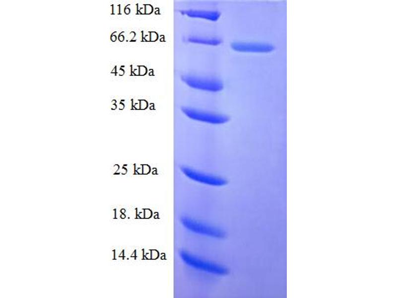 The purity of the protein is greater than 85 % as determined by SDS-PAGE and Coomassie blue staining.