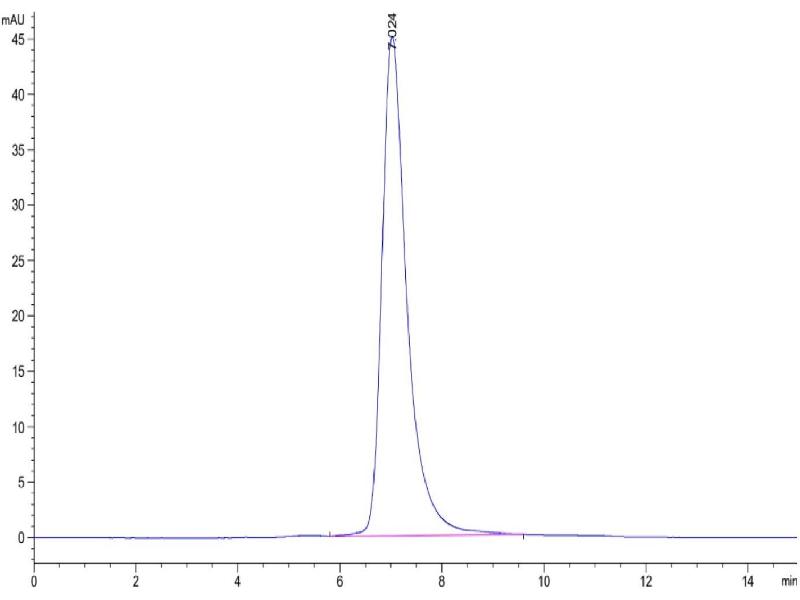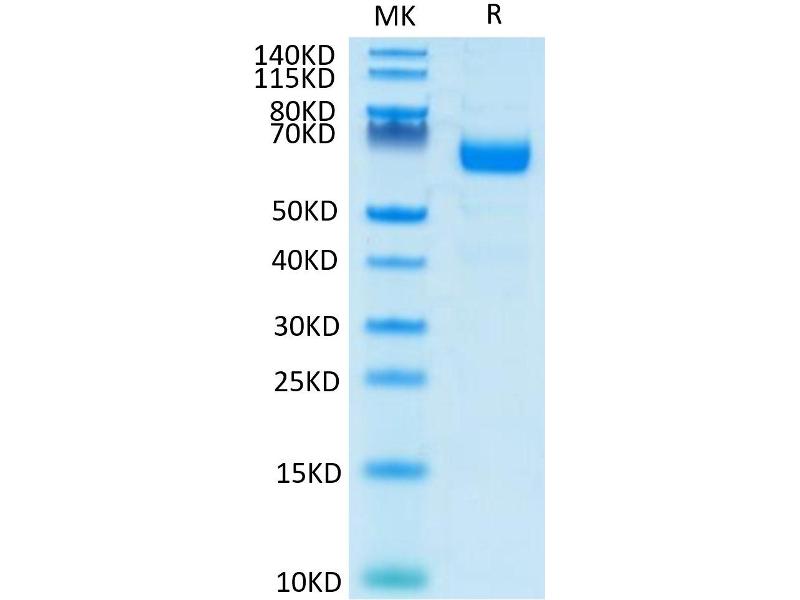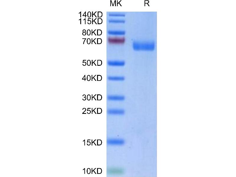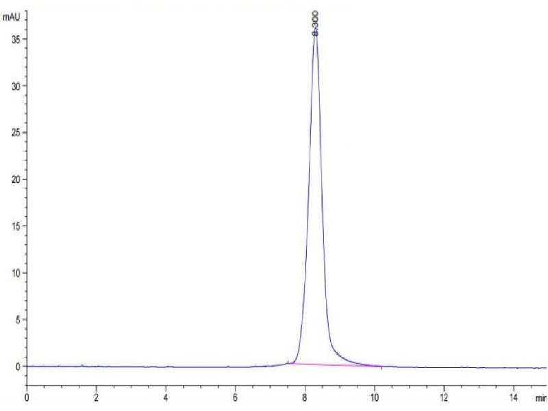 The purity of the protein is greater than 85 % as determined by SDS-PAGE and Coomassie blue staining.
