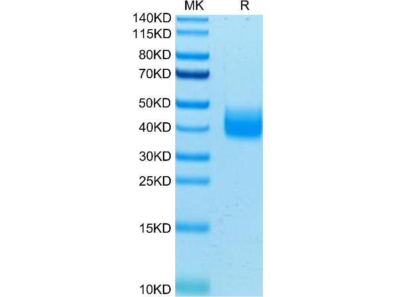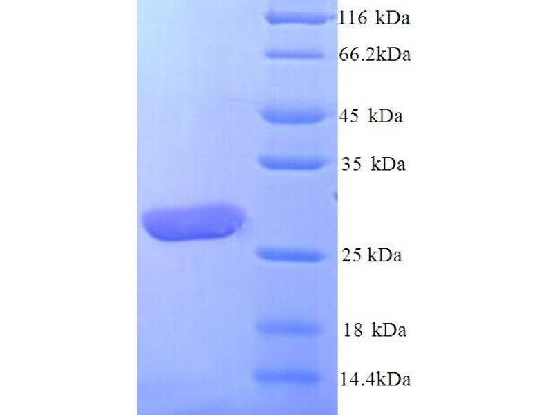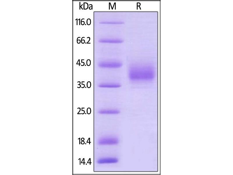 The purity of the protein is greater than 85 % as determined by SDS-PAGE and Coomassie blue staining.