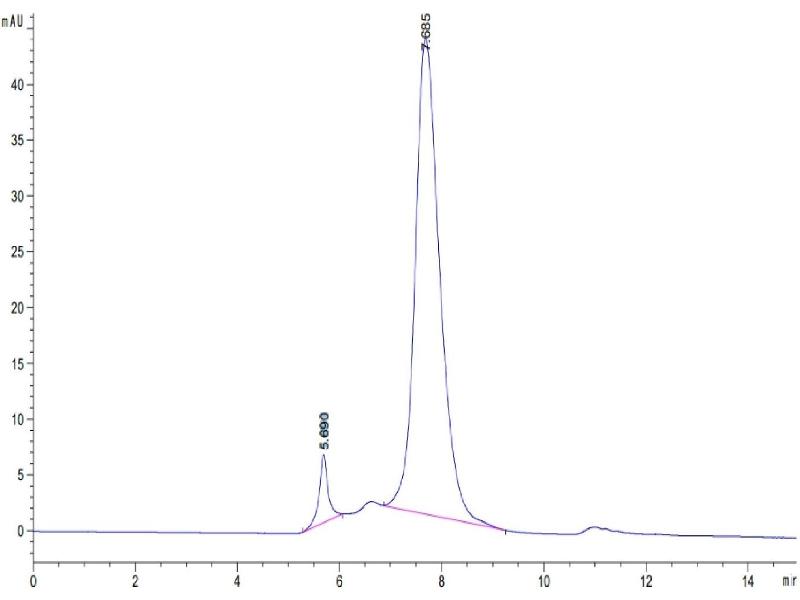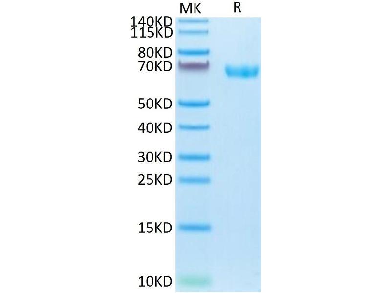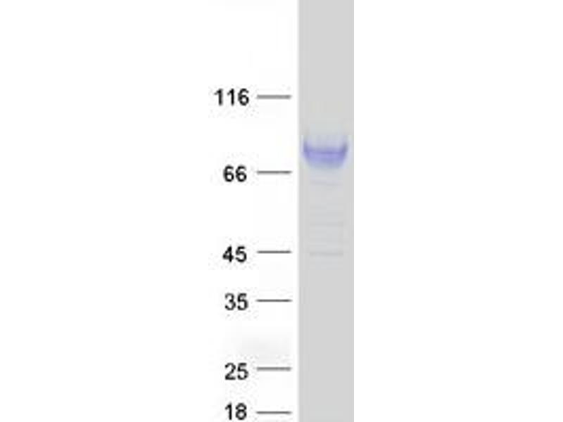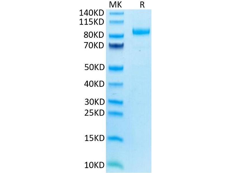 The purity of the protein is greater than 85 % as determined by SDS-PAGE and Coomassie blue staining.