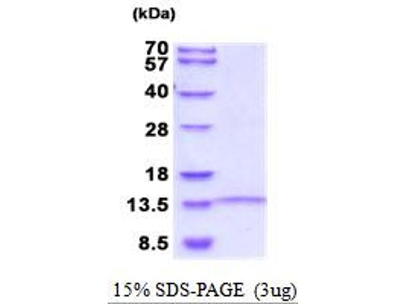 The purity of the protein is greater than 85 % as determined by SDS-PAGE and Coomassie blue staining.