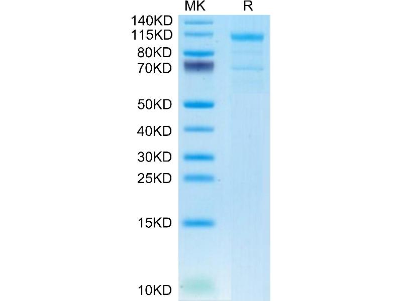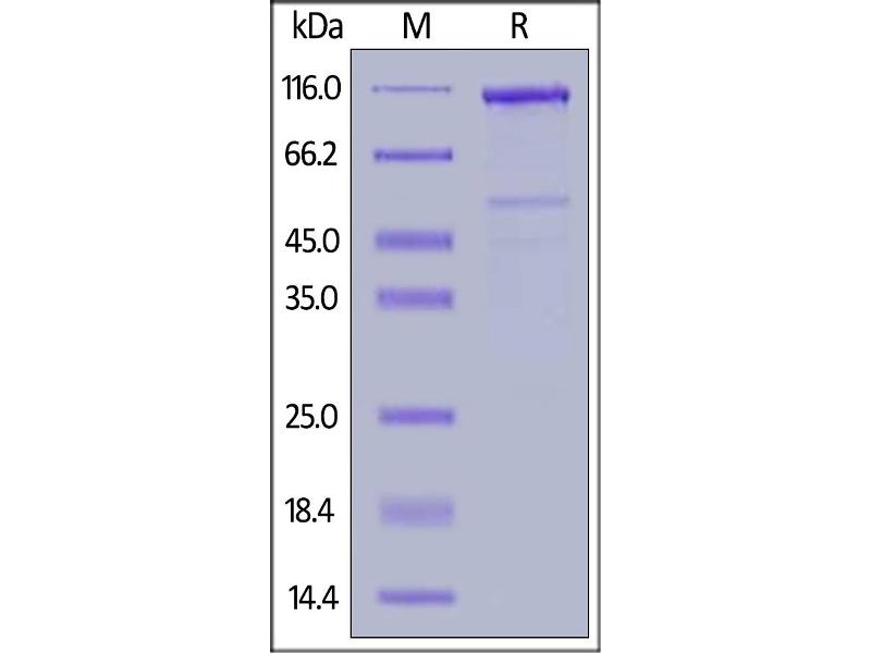 The purity of the protein is greater than 85 % as determined by SDS-PAGE and Coomassie blue staining.
