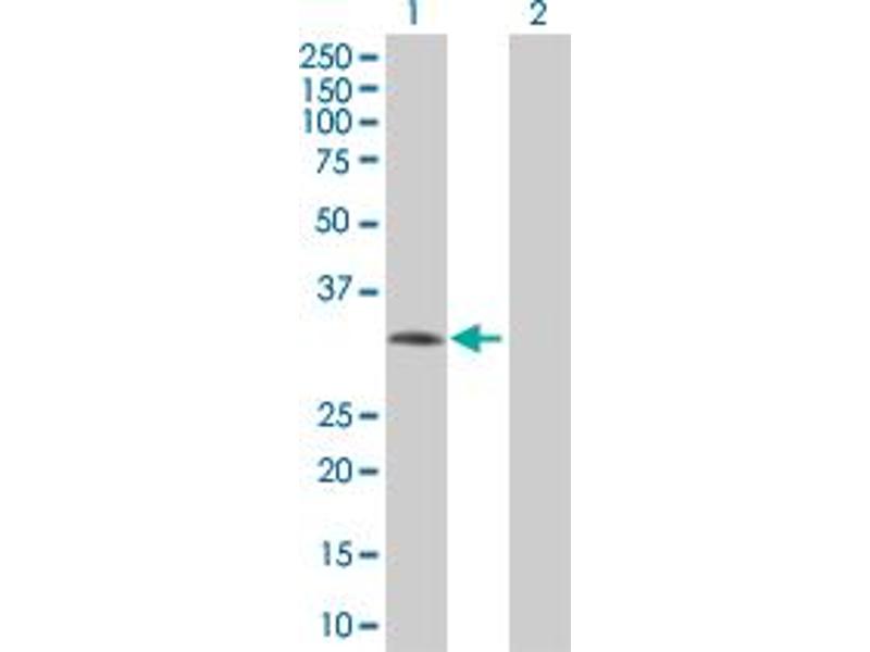 Product Quality tested by: Transient overexpression cell lysate was tested with Anti-AQP7 antibody by Western Blots.