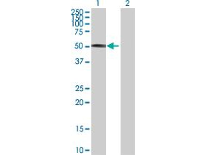 Product Quality tested by: Transient overexpression cell lysate was tested with Anti-FOXA2 antibody by Western Blots.