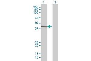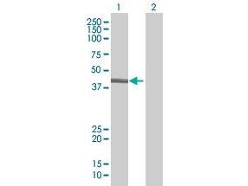 Product Quality tested by: Transient overexpression cell lysate was tested with Anti-POU4F3 antibody by Western Blots.