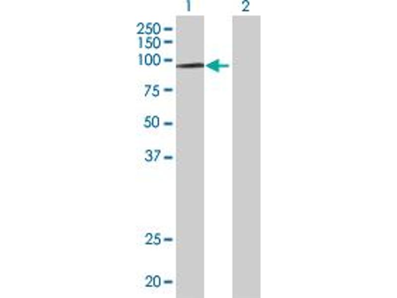 Product Quality tested by: Transient overexpression cell lysate was tested with Anti-HIRA antibody by Western Blots.