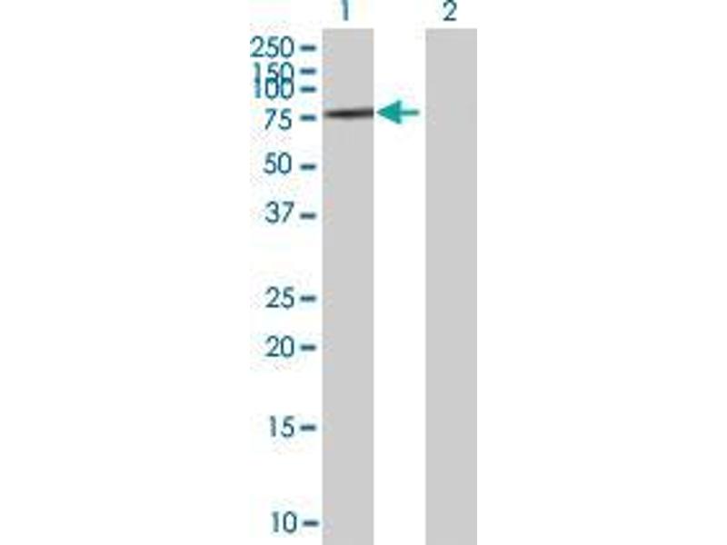 Product Quality tested by: Transient overexpression cell lysate was tested with Anti-ZNF257 antibody by Western Blots.