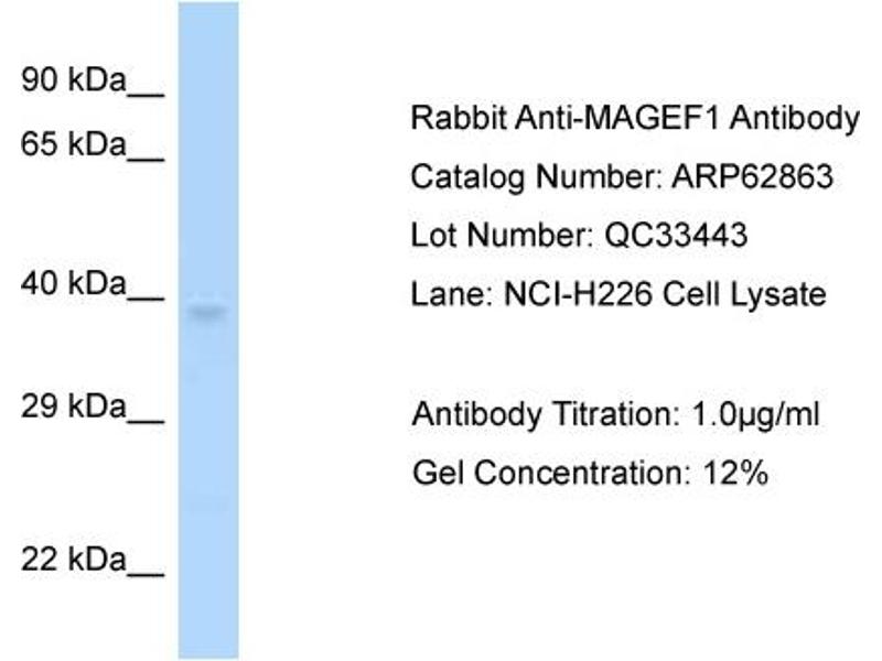 : "MAGE-F1, a novel ubiquitously expressed member of the MAGE superfamily." in: Gene, Vol. 267, Issue 2, pp. 173-82, (2001) (PubMed).Aliases for MAGEF1 抗体