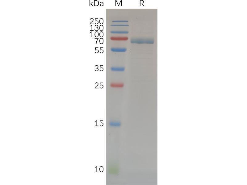 The purity of the protein is greater than 95 % as determined by SDS-PAGE and Coomassie blue staining.