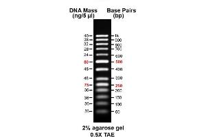 DNA ladder that range in size from 50 ~ 1,000 bp.