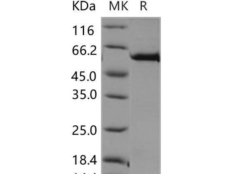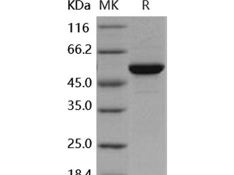 The purity of the protein is greater than 95 % as determined by SDS-PAGE and Coomassie blue staining.