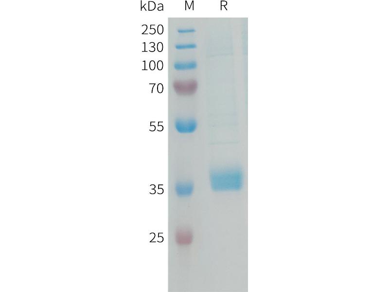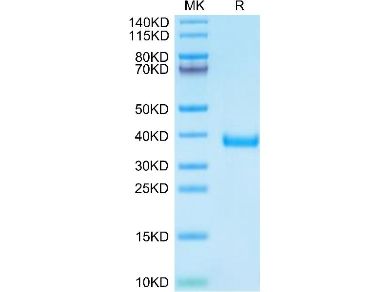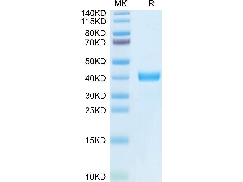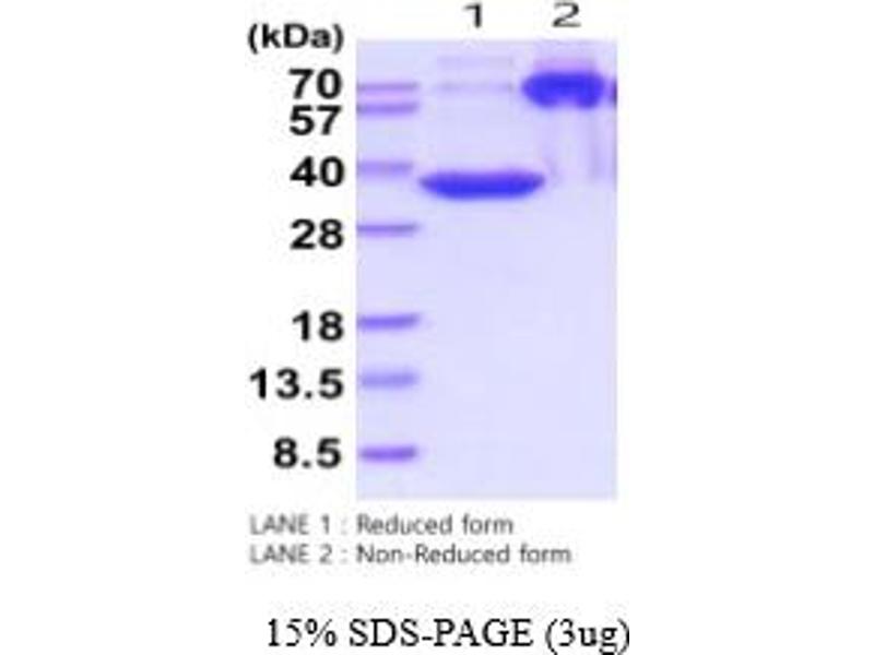The purity of the protein is greater than 85 % as determined by SDS-PAGE and Coomassie blue staining.