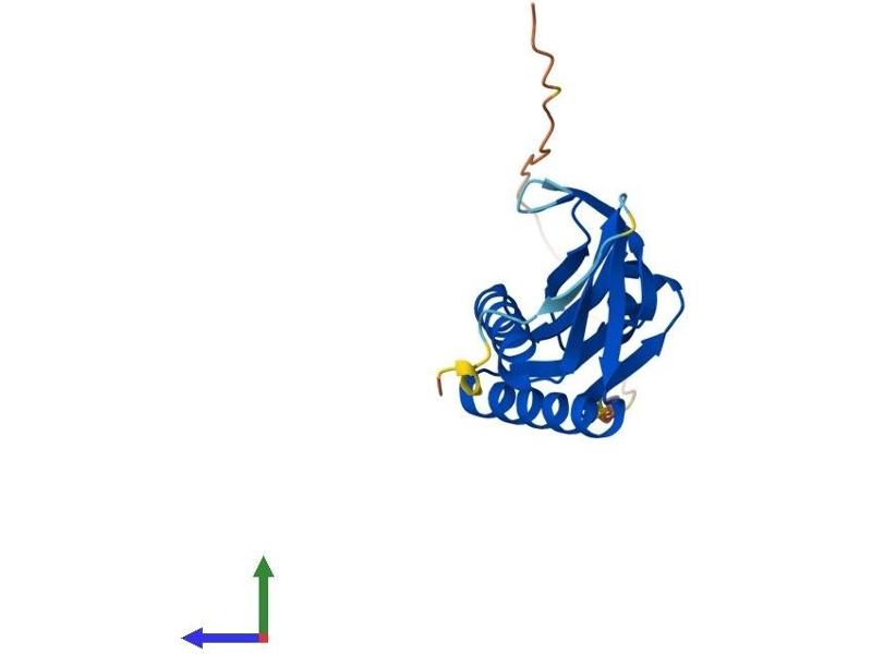 Eukaryotic molybdoenzymes use a unique molybdenum cofactor (MoCo) consisting of a pterin, termed molybdopterin, and the catalytically active metal molybdenum. MoCo is synthesized from precursor Z by the heterodimeric enzyme molybdopterin synthase. The large and small subunits of molybdopterin synthase are both encoded from this gene by overlapping open reading frames. The proteins were initially thought to be encoded from a bicistronic transcript. They are now thought to be encoded from monocistronic transcripts. Alternatively spliced transcripts have been found for this locus that encode the large and small subunits. [provided by RefSeq, Jul 2008].
