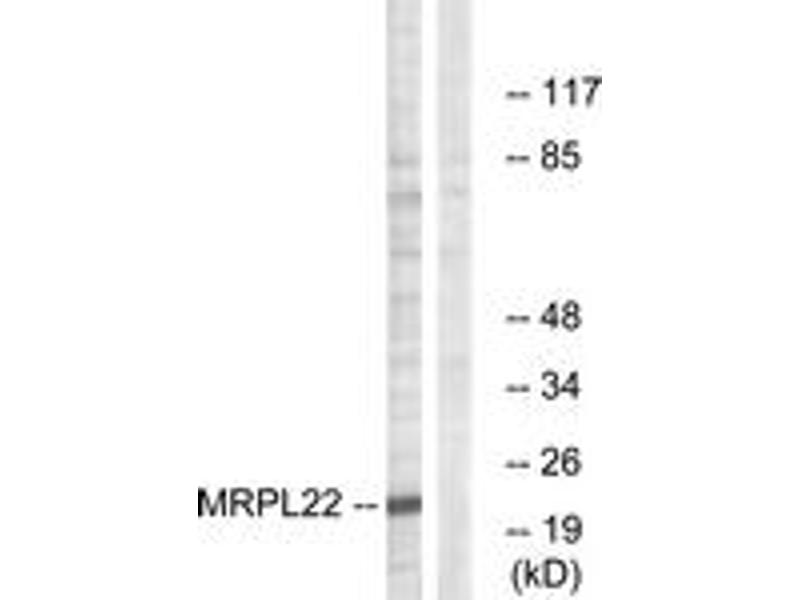 Mammalian mitochondrial ribosomal proteins are encoded by nuclear genes and help in protein synthesis within the mitochondrion. Mitochondrial ribosomes (mitoribosomes) consist of a small 28S subunit and a large 39S subunit. They have an estimated 75% protein to rRNA composition compared to prokaryotic ribosomes, where this ratio is reversed. Another difference between mammalian mitoribosomes and prokaryotic ribosomes is that the latter contain a 5S rRNA. Among different species, the proteins comprising the mitoribosome differ greatly in sequence, and sometimes in biochemical properties, which prevents easy recognition by sequence homology. This gene encodes a 39S subunit protein that belongs to the L22 ribosomal protein family. A pseudogene corresponding to this gene is found on chromosome 4q. Two transcript variants encoding different isoforms have been found for this gene. [provided by RefSeq, Jul 2008].