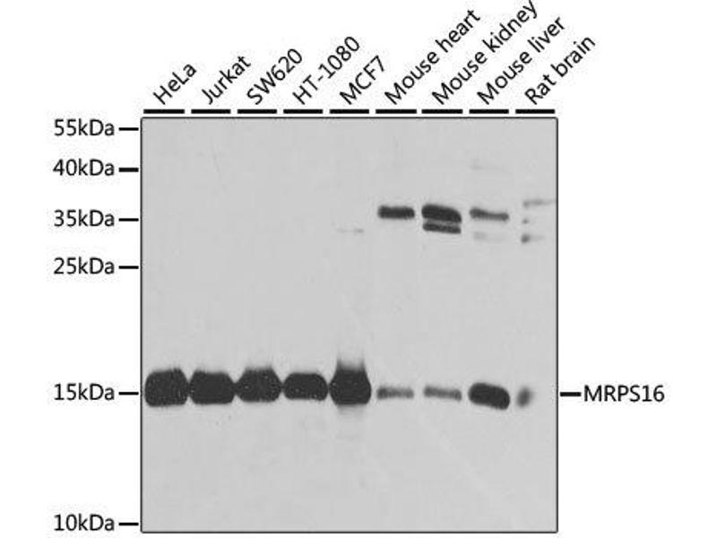 Mammalian mitochondrial ribosomal proteins are encoded by nuclear genes and help in protein synthesis within the mitochondrion. Mitochondrial ribosomes (mitoribosomes) consist of a small 28S subunit and a large 39S subunit. They have an estimated 75% protein to rRNA composition compared to prokaryotic ribosomes, where this ratio is reversed. Another difference between mammalian mitoribosomes and prokaryotic ribosomes is that the latter contain a 5S rRNA. Among different species, the proteins comprising the mitoribosome differ greatly in sequence, and sometimes in biochemical properties, which prevents easy recognition by sequence homology. This gene encodes a 28S subunit protein that belongs to the ribosomal protein S16P family. The encoded protein is one of the most highly conserved ribosomal proteins between mammalian and yeast mitochondria. Three pseudogenes (located at 8q21.3, 20q13.32, 22q12-q13.1) for this gene have been described. [provided by RefSeq, Jul 2008].