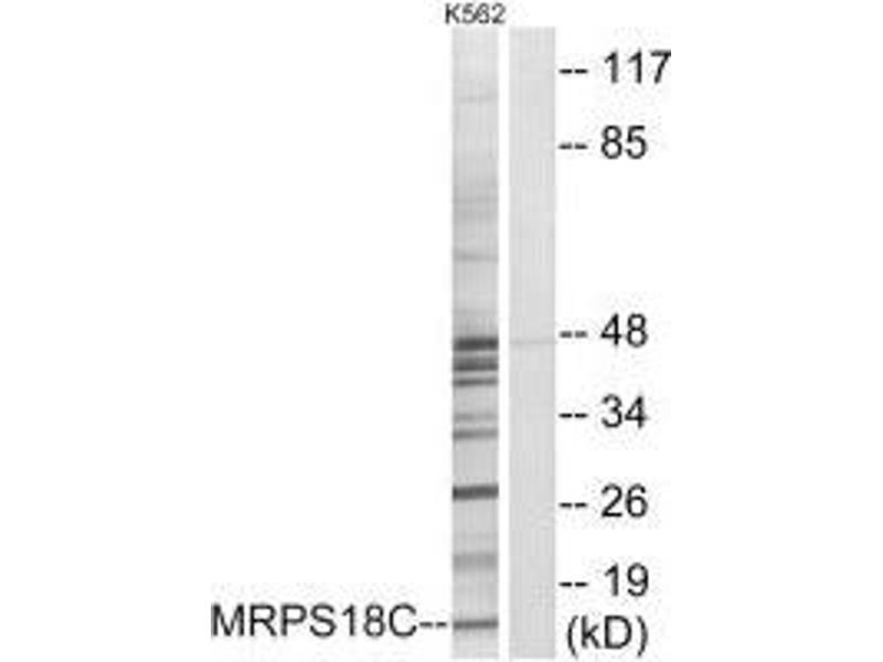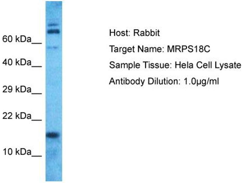 Mammalian mitochondrial ribosomal proteins are encoded by nuclear genes and help in protein synthesis within the mitochondrion. Mitochondrial ribosomes (mitoribosomes) consist of a small 28S subunit and a large 39S subunit. They have an estimated 75% protein to rRNA composition compared to prokaryotic ribosomes, where this ratio is reversed. Another difference between mammalian mitoribosomes and prokaryotic ribosomes is that the latter contain a 5S rRNA. Among different species, the proteins comprising the mitoribosome differ greatly in sequence, and sometimes in biochemical properties, which prevents easy recognition by sequence homology. This gene encodes a 28S subunit protein that belongs to the ribosomal protein S18P family. The encoded protein is one of three that has significant sequence similarity to bacterial S18 proteins. The primary sequences of the three human mitochondrial S18 proteins are no more closely related to each other than they are to the prokaryotic S18 proteins. Pseudogenes corresponding to this gene are found on chromosomes 8p, 12p, 15q, and 22q. [provided by RefSeq, Jul 2008].