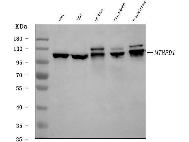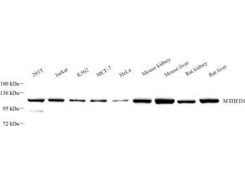 methylenetetrahydrofolate dehydrogenase, cyclohydrolase and formyltetrahydrofolate synthetase 1 (MTHFD1) 抗体methylenetetrahydrofolate dehydrogenase, cyclohydrolase and formyltetrahydrofolate synthetase 1 (Mthfd1) 抗体