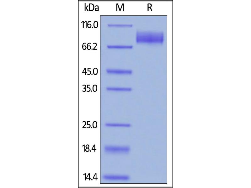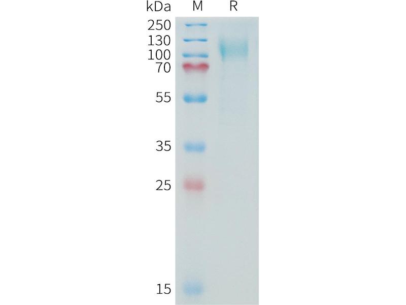 The purity of the protein is greater than 85 % as determined by SDS-PAGE and Coomassie blue staining.