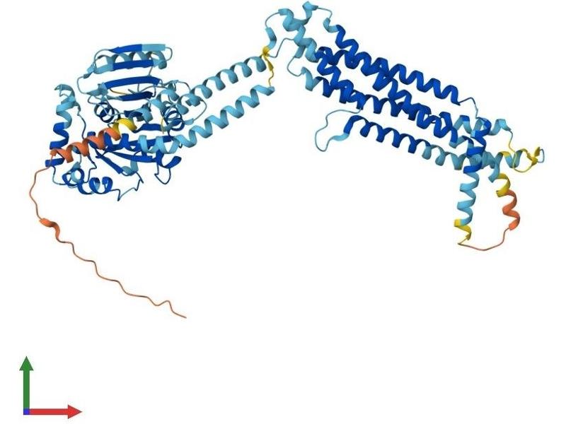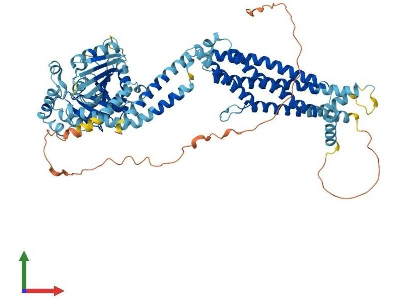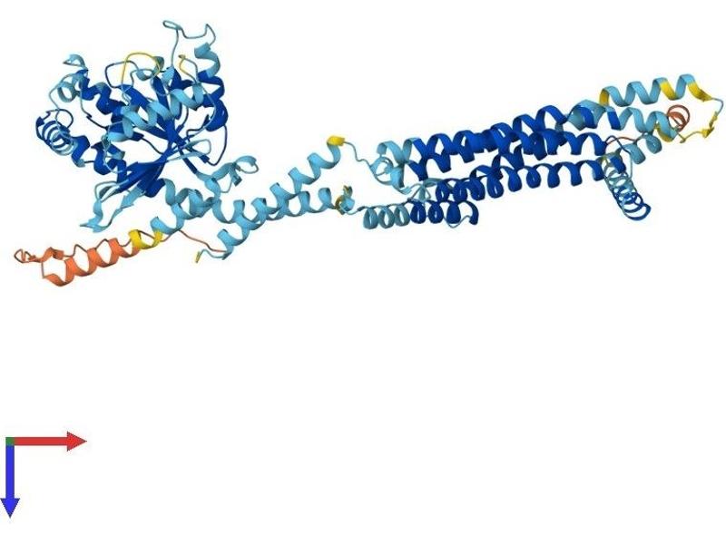 The protein encoded by this gene has a nuclear and a cytoplasmic form and is a member of both the dynamin family and the family of large GTPases. The nuclear form is localized in a granular pattern in the heterochromatin region beneath the nuclear envelope. A nuclear localization signal (NLS) is present at the amino terminal end of the nuclear form but is lacking in the cytoplasmic form due to use of an alternate translation start codon. This protein is upregulated by interferon-alpha but does not contain the antiviral activity of a similar myxovirus resistance protein 1. [provided by RefSeq, Jul 2008].