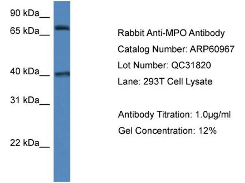 MPO 适用: 人, 小鼠, 大鼠, Cow, 兔, 马, 犬, 山羊, 豚鼠 WB 宿主: 兔 Polyclonal unconjugated