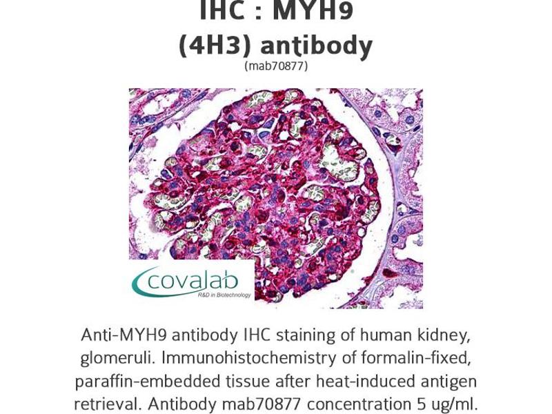 MYH9 适用: 人 WB, ELISA, IF, IHC (p) 宿主: 小鼠 Monoclonal 4H3 unconjugated