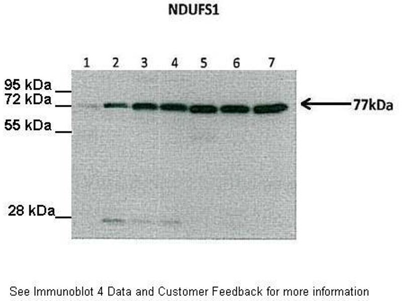 The protein encoded by this gene belongs to the complex I 75 kDa subunit family. Mammalian complex I is composed of 45 different subunits. It locates at the mitochondrial inner membrane. This protein has NADH dehydrogenase activity and oxidoreductase activity. It transfers electrons from NADH to the respiratory chain. The immediate electron acceptor for the enzyme is believed to be ubiquinone. This protein is the largest subunit of complex I and it is a component of the iron-sulfur (IP) fragment of the enzyme. It may form part of the active site crevice where NADH is oxidized. Mutations in this gene are associated with complex I deficiency. Several transcript variants encoding different isoforms have been found for this gene. [provided by RefSeq, Jan 2011].