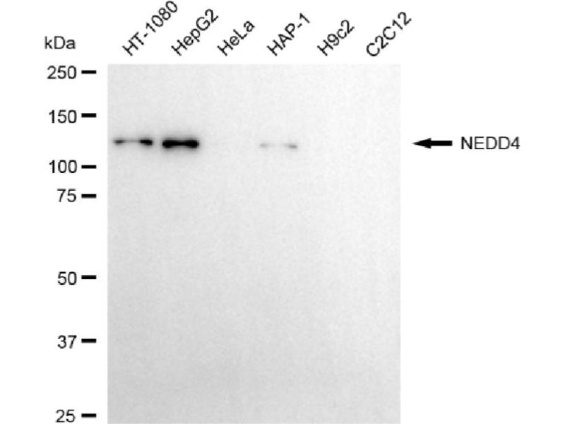 NEDD4 适用: 人, 大鼠 WB, FACS, IF (cc), IF (p) 宿主: 兔 Polyclonal Cy5.5