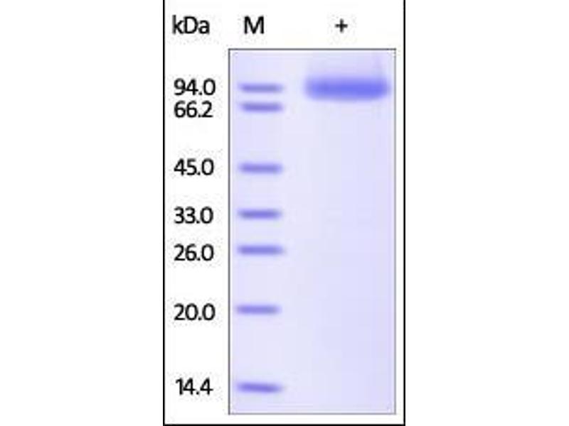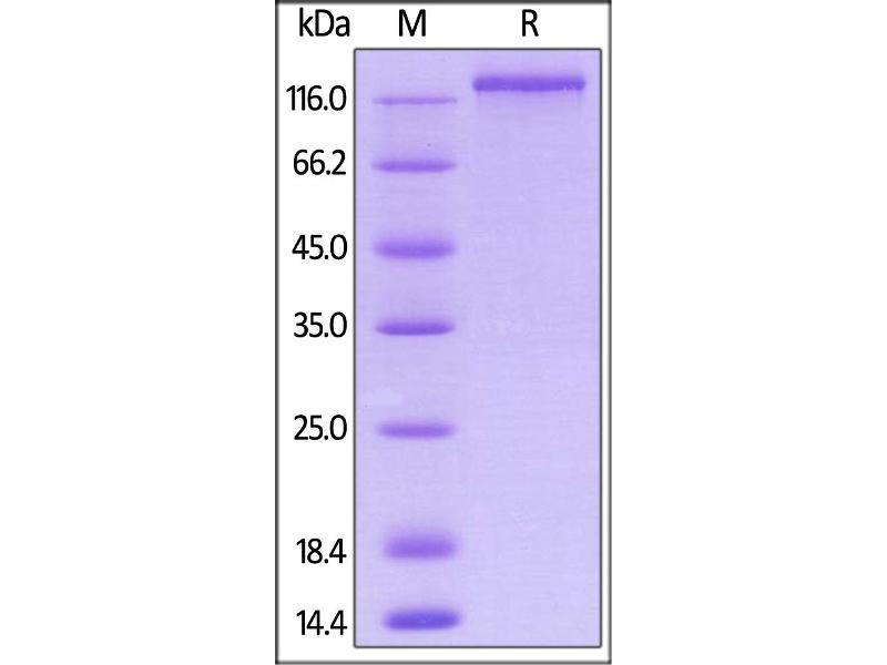 The purity of the protein is greater than 85 % as determined by SDS-PAGE and Coomassie blue staining.