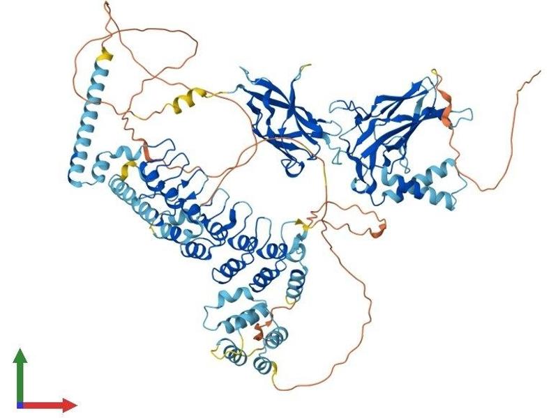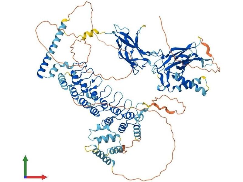 NF-kappa-B is a pleiotropic transcription factor which is present in almost all cell types and is involved in many biological processed such as inflammation, immunity, differentiation, cell growth, tumorigenesis and apoptosis. NF- kappa-B is a homo- or heterodimeric complex formed by the Rel-like domain-containing proteins RELA/p65, RELB, NFKB1/p105, NFKB1/p50, REL and NFKB2/p52. The dimers bind at kappa-B sites in the DNA of their target genes and the individual dimers have distinct preferences for different kappa-B sites that they can bind with distinguishable affinity and specificity. Different dimer combinations act as transcriptional activators or repressors, respectively. NF-kappa-B is controlled by various mechanisms of post-translational modification and subcellular compartmentalization as well as by interactions with other cofactors or corepressors. NF-kappa-B complexes are held in the cytoplasm in an inactive state complexed with members of the NF- kappa-B inhibitor (I-kappa-B) family. In a conventional activation pathway, I-kappa-B is phosphorylated by I-kappa-B kinases (IKKs) in response to different activators, subsequently degraded thus liberating the active NF-kappa-B complex which translocates to the nucleus. In a non-canonical activation pathway, the MAP3K14- activated CHUK/IKKA homodimer phosphorylates NFKB2/p100 associated with RelB, inducing its proteolytic processing to NFKB2/p52 and the formation of NF-kappa-B RelB-p52 complexes. The NF-kappa-B heterodimeric RelB-p52 complex is a transcriptional activator. The NF-kappa-B p52-p52 homodimer is a transcriptional repressor. NFKB2 appears to have dual functions such as cytoplasmic retention of attached NF-kappa-B proteins by p100 and generation of p52 by a cotranslational processing. The proteasome-mediated process ensures the production of both p52 and p100 and preserves their independent function. p52 binds to the kappa-B consensus sequence 5'-GGRNNYYCC-3', located in the enhancer region of genes involved in immune response and acute phase reactions. p52 and p100 are respectively the minor and major form\; the processing of p100 being relatively poor. Isoform p49 is a subunit of the NF-kappa-B protein complex, which stimulates the HIV enhancer in synergy with p65 (By similarity).