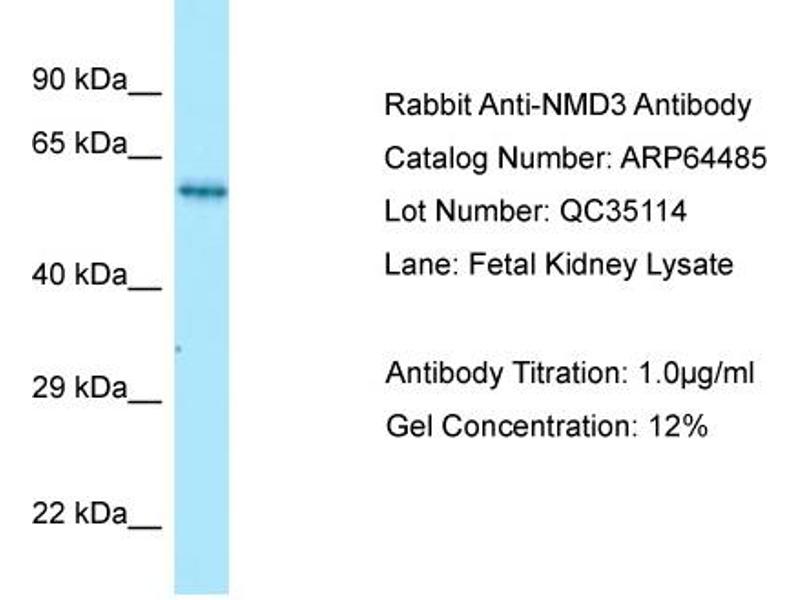 Ribosomes are composed of 60S and 40S subunits that are assembled in the nucleolus and exported to the cytoplasm through nuclear pore complexes in the nuclear envelope. NMD3 is an adaptor for 60S subunit export via the CRM1 (XPO1\; MIM 602559) pathway (Trotta et al., 2003 [PubMed 12773398]).[supplied by OMIM, Mar 2008].
