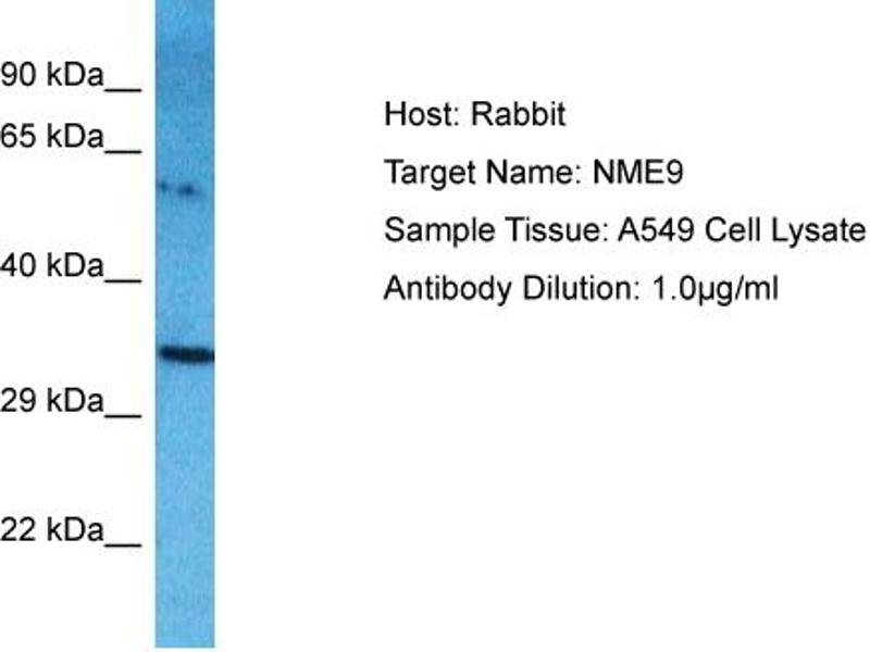 : "Characterization of human thioredoxin-like 2. A novel microtubule-binding thioredoxin expressed predominantly in the cilia of lung airway epithelium and spermatid manchette and axoneme." in: The Journal of biological chemistry, Vol. 278, Issue 15, pp. 13133-42, (2003) (PubMed).Aliases for NME9 抗体